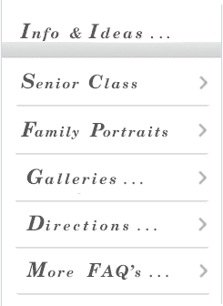 - Select a photographer who's creative imaging style will project your personality. - Check with your friends or ask for a reference. If you have time, stop by and check us out. | ||||||||||